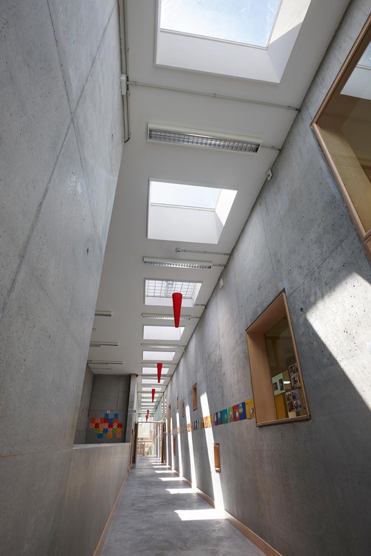 גגות שטוחים שהם חללים פנימיים ללא חלונות , נפתחים לאור ואויר רענן.